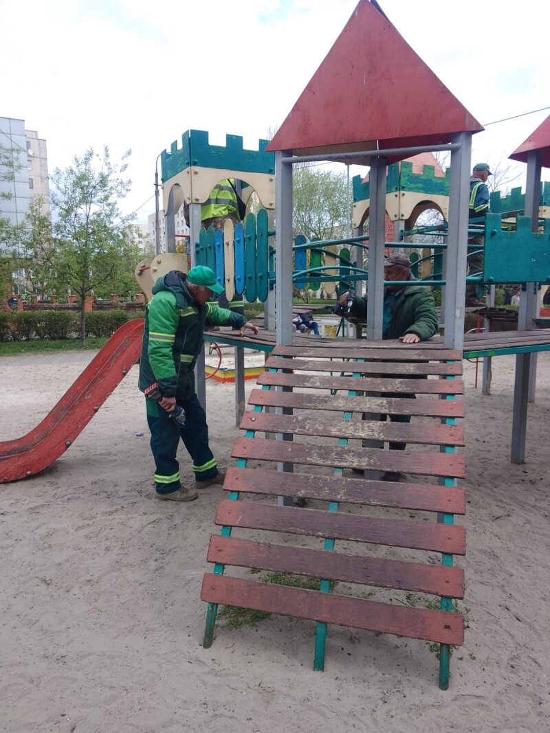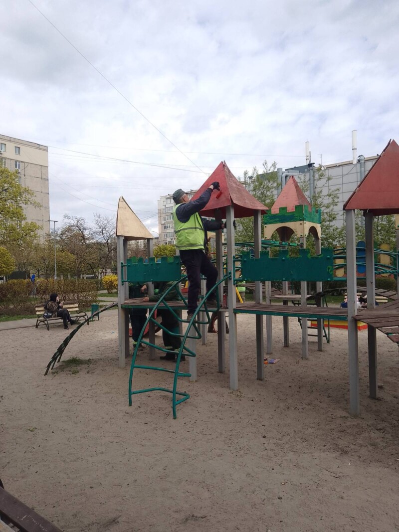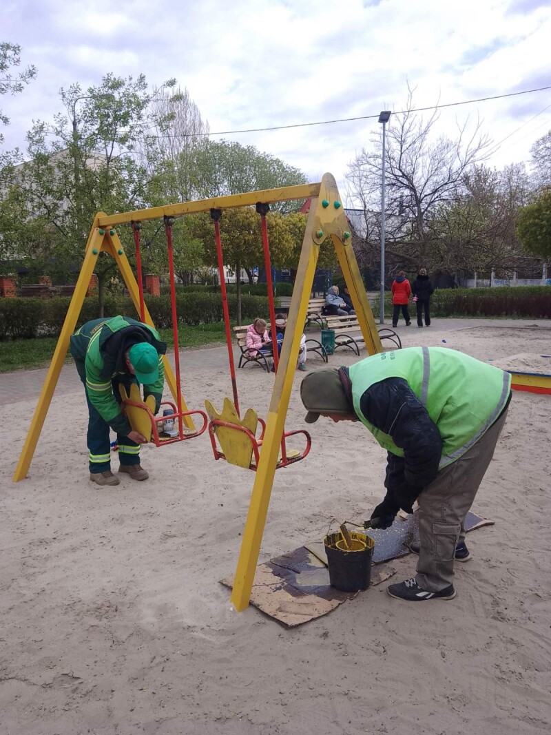 Тривають роботи з ремонту та фарбування елементів дитячих майданчиків 🛝, паркових лав 🪑 та інших об’єктів благоустрою. Яскраві кольори, охайний вигляд і безпечне середовище — усе для вашого комфортного відпочинку 😊✨