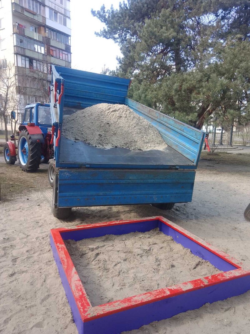 На фото — завозимо свіженький, чистий пісок у пісочниці 🏖️🪣